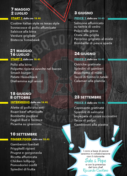 Durante ogni corso verranno utilizzati 6 barbecue per un numero limitato di 14 partecipanti.